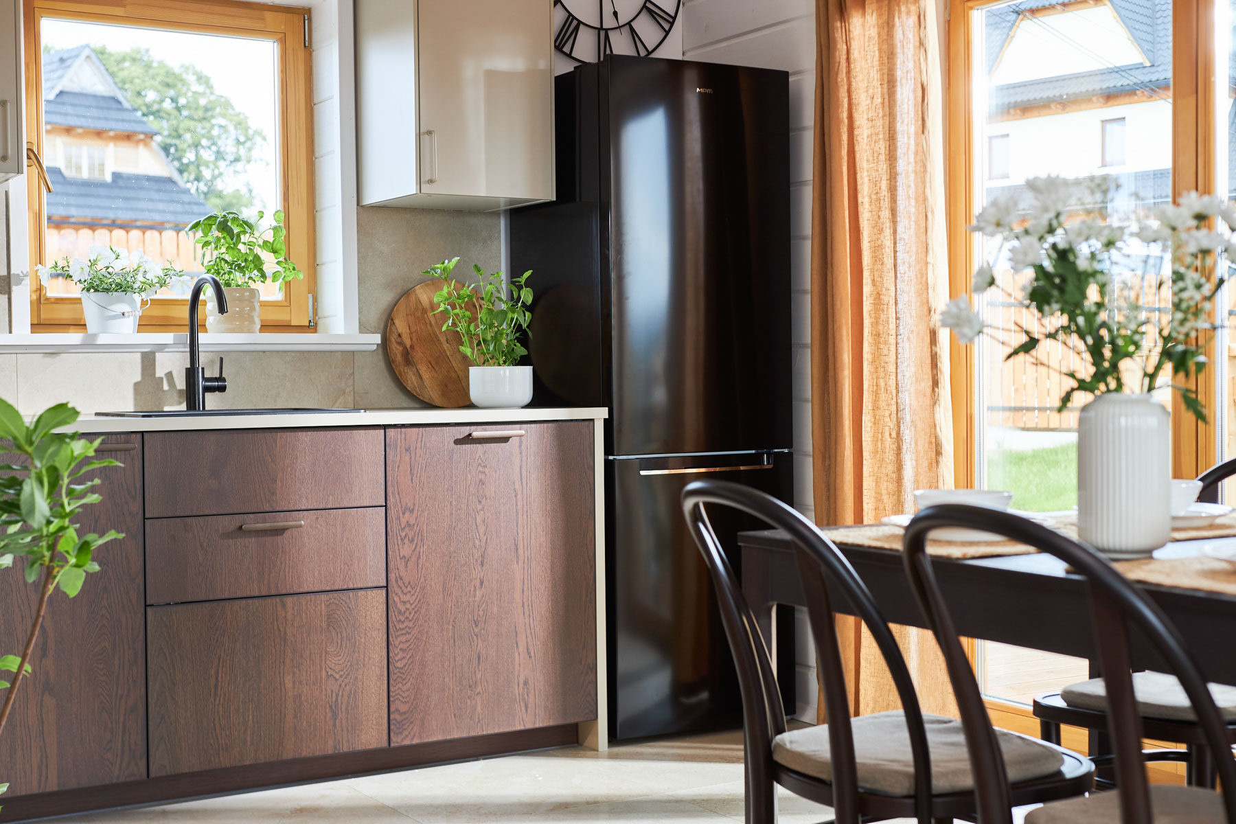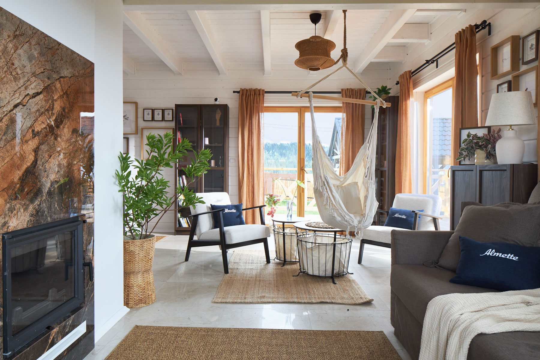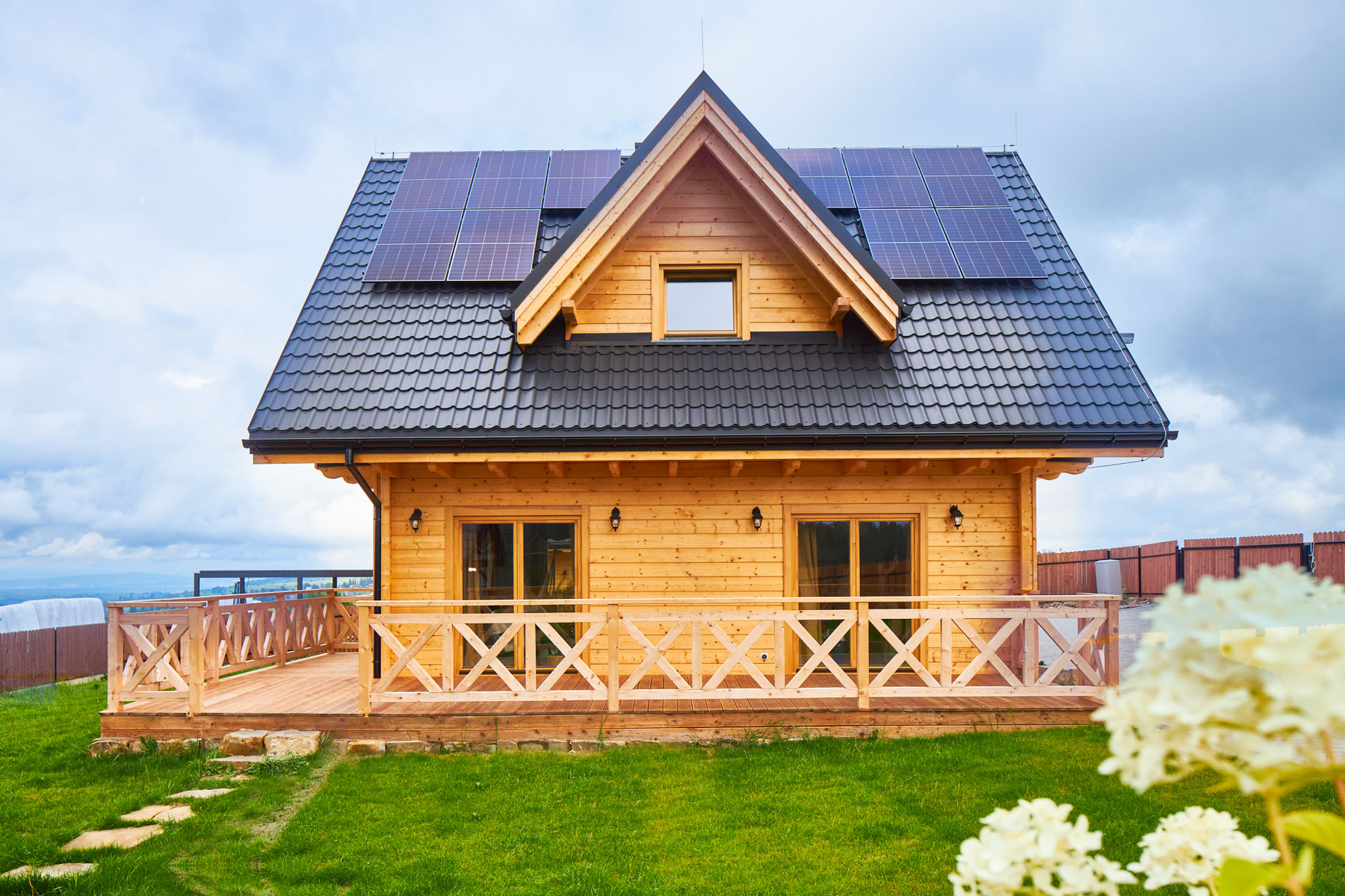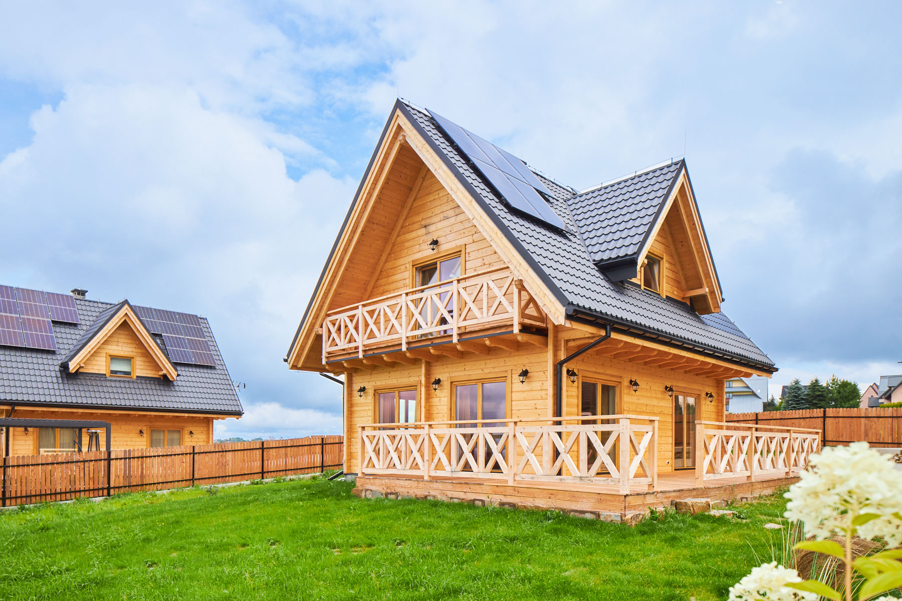 Dom marzeń jest pięknie, komfortowo i modnie urządzony — gotowy do zamieszkania. Wyposażony m.in. w technologie smart i eko: ogrzewanie i światło sterowane smartfonem, kominek z płaszczem wodnym oraz panele solarne zapewniające oszczędności. Zaprojektowany z myślą o wygodzie i stylu: przytulny salon, kuchnia z jadalnią, 2 sypialnie i 2 łazienki. Drewniane wykończenia, miękka sofa w „trendy” odcieniu Mocha Mousse, taras z widokiem na góry — wszystko tu gra i pasuje do siebie.