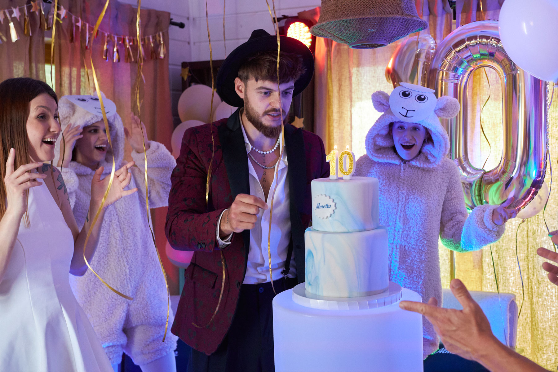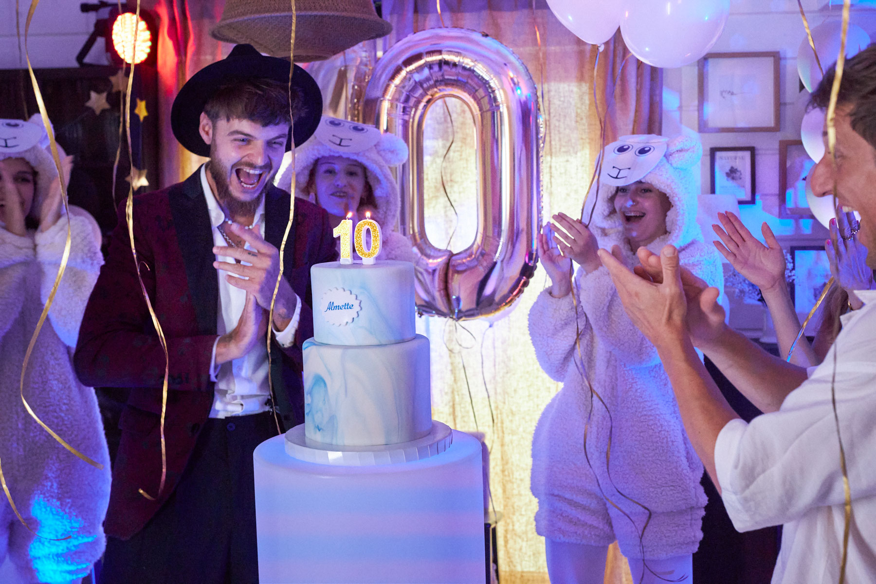Cała ekipa bawiła się cudownie, a na koniec domówki wjechał piętrowy, jubileuszowy tort Almette.
